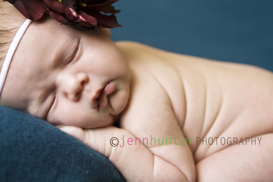 I met this chunky lil 10 day old baby girl yesterday for her newborn session. It did not go as planned, but luckily we did get some really nice shots of her. She was born almost 2 weeks over due, and weighed in at almost 9 pounds. She was NOT wanting to sleep for our session at all! I am greatful that I was able to get something, rather than nothing though! I think this is the biggest baby I have ever photographed. I love the chub she has and I am still pouting because I couldn’t get more pictures of her!