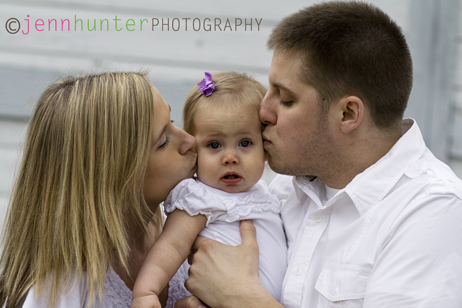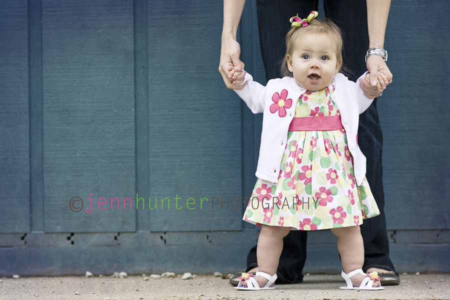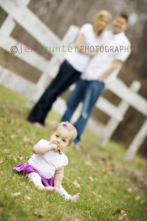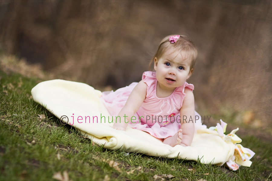 It has been such a change FINALLY being able to get outside and do some shoots! Not only that but I have actually got to play with the new lens I got for Christmas alot more! I met adorable smiley G and her gorgeous mom and dad today for her 6 month pictures. Not only was the family amazingly adorable, but G was SO awesome outside in the chilly weather. It was a little cooler out than we thought it would be when we scheduled her session, but she didn’t melt down about it one time! She was mostly all smiles the entire time and I had a very nice time with these guys! I always get a kick out of the parents who are NOT scared to act like total goofs to get their little ones to smile, and dad was definitely not afraid of people seeing him dance with Mickey Mouse behind me